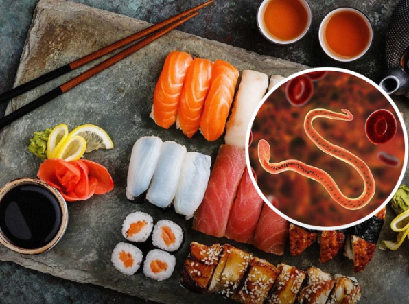 Fish live in environments where parasites naturally exist. When fish is eaten raw or not cooked thoroughly, these parasites can survive and enter the human digestive system.